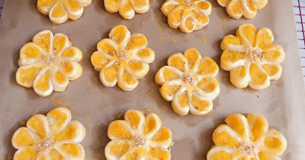 Làm bánh quy tạo hình hoa mai hợp với không khí đón xuân với nhân dứa có vị chua ngọt, ăn rất thơm ngon mà không bị ngấy