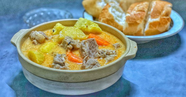 Với cách nấu cà ri này, món ăn có hương vị hơi cay với khoai, thịt heo béo ngậy, cà rốt mềm và thơm ngọt quyện đều trong nước súp sánh ngọt