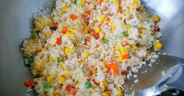 Với cách làm này, đĩa cơm rang của bạn sẽ trở nên vô cùng đẹp mắt. Hạt cơm mềm, thơm, màu vàng óng ánh, ai ăn cũng tấm tắc khen