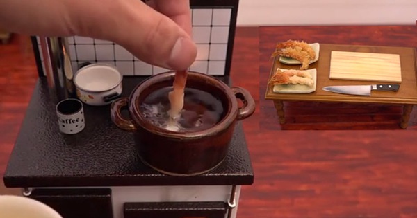 Món tôm được chiên bởi những dụng cụ tí hon chỉ dùng hai ngón tay khiến ai cũng muốn vào bếp trổ tài khéo léo
