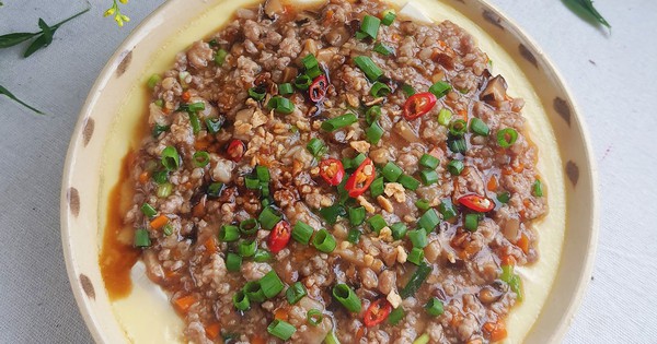 Món trứng hấp đậu hũ sốt thịt băm ăn với cơm nóng sẽ rất ngon, phù hợp với mọi thời tiết
