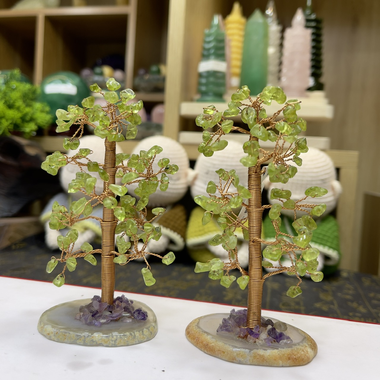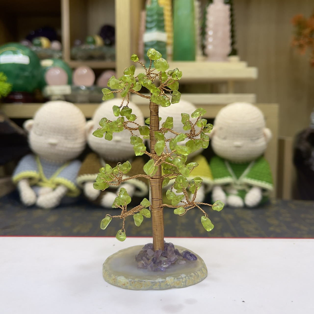 - Trang trí nơi làm việc: Đặt cây tài lộc đá Peridot trên bàn làm việc của bạn để tăng cường năng lượng tích cực và sự tập trung. Kết hợp với các phụ kiện làm việc màu xanh lá cây hoặc màu tươi sáng để tạo ra một không gian làm việc tràn đầy năng lượng.