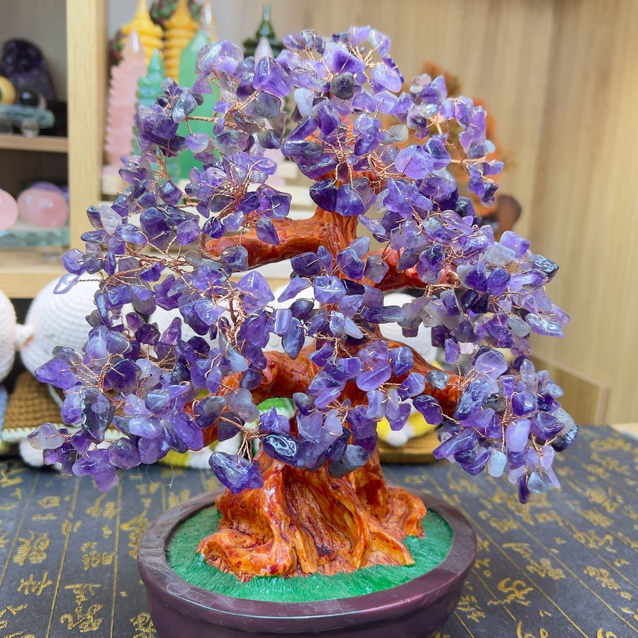 - Trấn an và bình an: Thạch anh tím còn được liên kết với sự trấn an và bình an. Cây tài lộc thạch anh tím có thể giúp giảm căng thẳng và tạo ra không gian yên tĩnh, thích hợp để thư giãn.