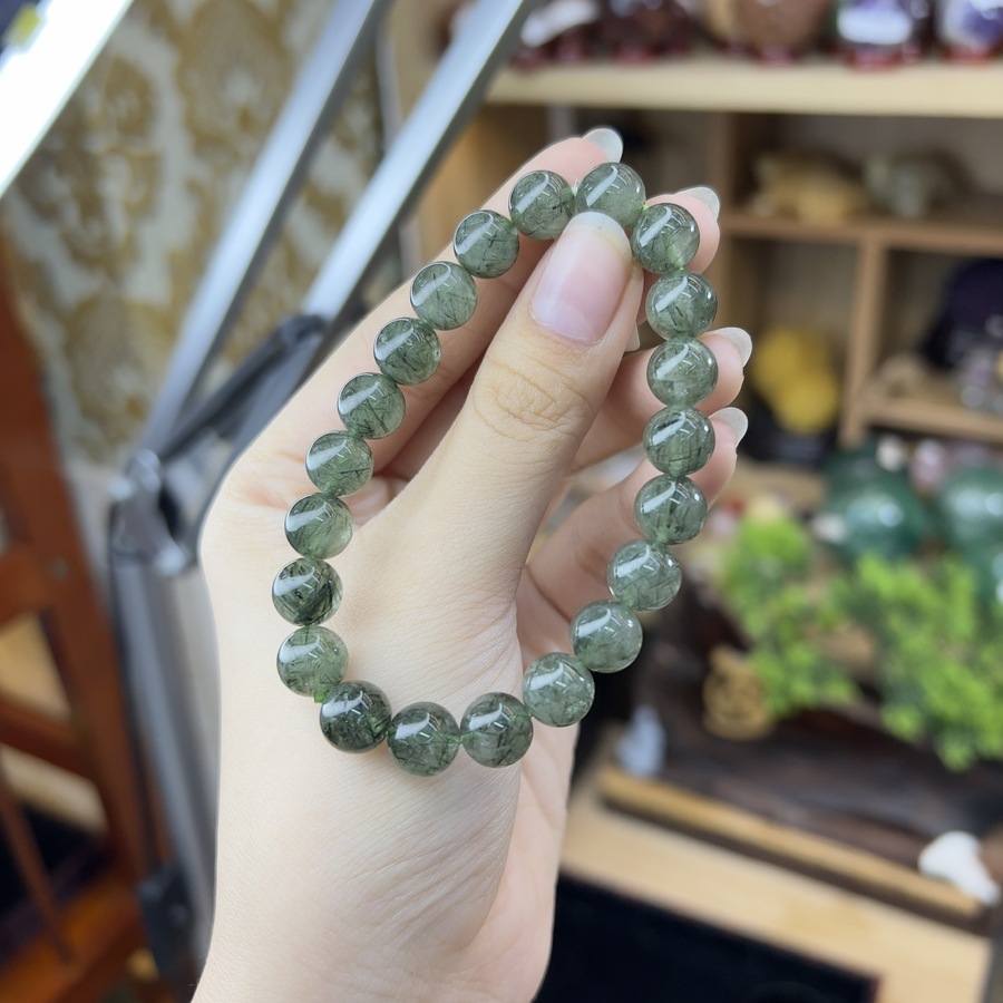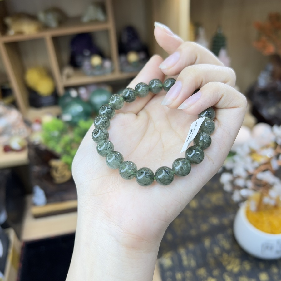 Chuỗi Vòng Đá Thạch Anh Chuỗi Tóc Xanh là một loại trang sức được làm từ đá Thạch Anh Tóc Xanh tự nhiên. Đây là một loại đá quý được ưa chuộng trong giới phong thủy và thường được sử dụng để tạo ra vòng chuỗi, đồ trang sức và các vật phẩm phong thủy khác. Với màu sắc xanh ngọc bích đẹp mắt cùng vân tóc tự nhiên giúp làm nên những họa tiết tự nhiên cho chuỗi vòng đá. Một sự kết hợp hoàn hảo giữa vẻ đẹp thẩm mỹ và phong thủy.